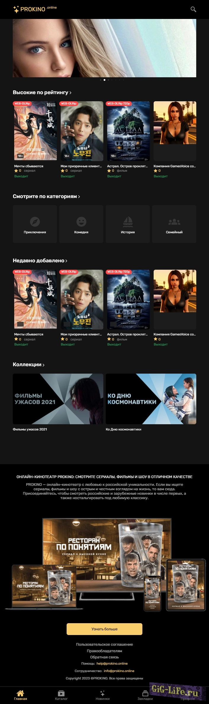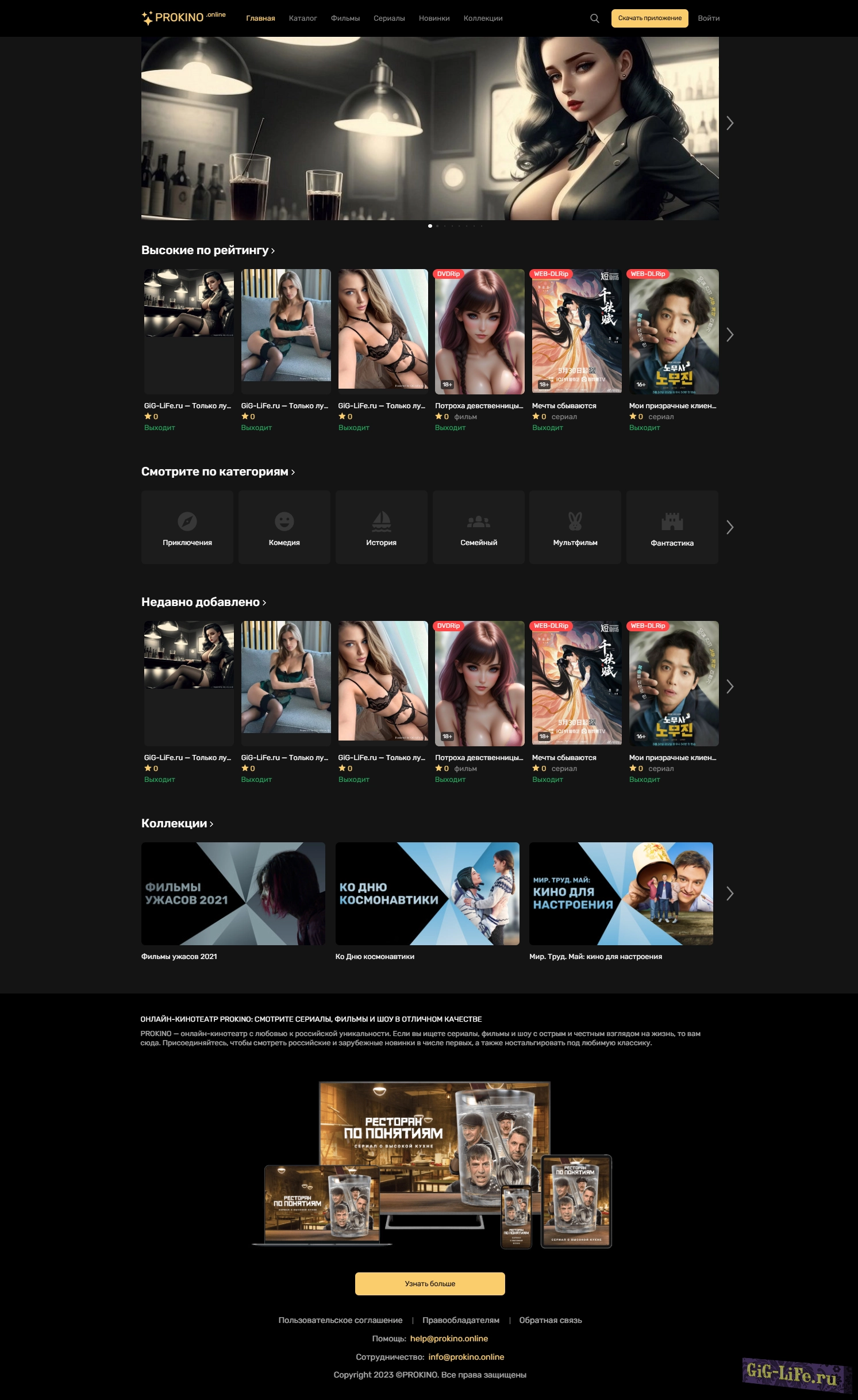 Шаблон Prokino — идеальное решение для создания кинопортала. В верхней части страницы расположен логотип, основное меню без выпадающих элементов, быстрый поиск и панель пользователя. Под меню находится слайдер, а ниже — публикации, которые выводятся с помощью тега custom. Это решение обеспечивает удобство и гибкость.