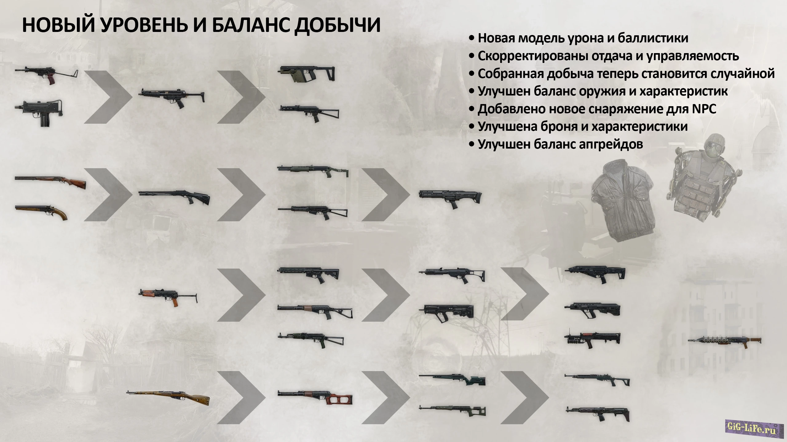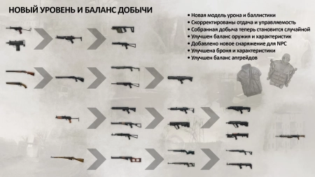 - Этот мод меняет баланс урона, баллистику и ощущения от оружия. Оружие будет ощущаться иначе: по-другому урон и отдача. В сочетании с изменениями в механике кровотечения, исцеления и страха бои станут более реалистичными и жестокими. Артефакты сильнее влияют на бой.