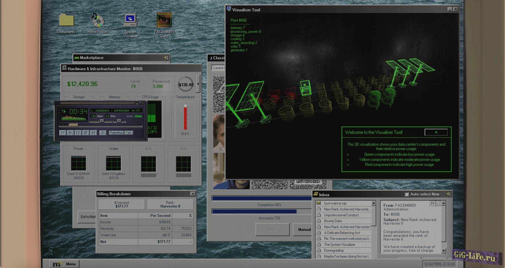 В игре используется потрясающий саундтрек, вдохновлённый 90-ми, от Madwreck. Будь то хаус, джангл или эмбиент — встроенный аудиоплеер погрузит вас в мир, где вы будете вносить свой вклад в историю ИИ.