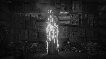 Погрузитесь в мрачный фолк-хоррор и отправляйтесь в путешествие по сказочным мирам. Исследуйте странный мир забытых историй в завораживающем черно-белом стиле.