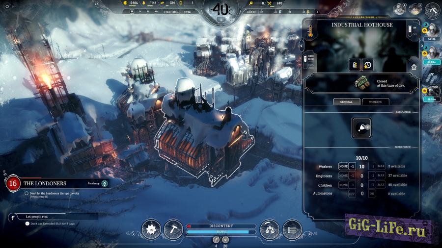 Frostpunk – игра о выживании города, где тепло – это жизнь, а у всякого решения есть своя цена. Ваша задача – построить последний город на земле и обеспечить людей всем необходимым для выживания.