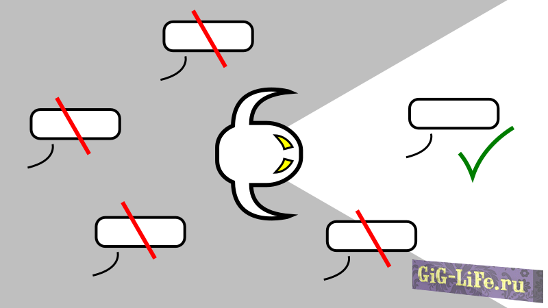 Только 20 градусов от лица (сторону, в которую смотрит персонаж).