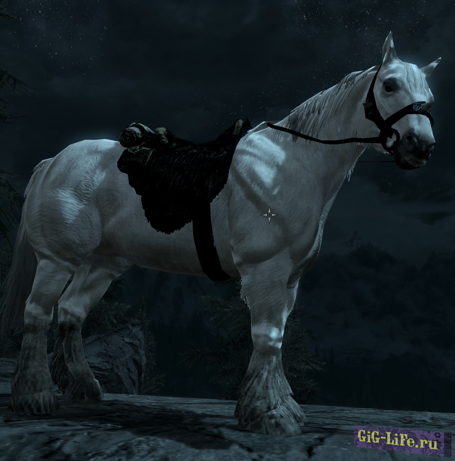 Ретекстур коня Мороз под коня Серогрив, на котором ездил Гендальф из Властелин Колец. Коня получить можно после квеста в Рифтене. Также мод заменяет коней в конюшнях Солитьюда.