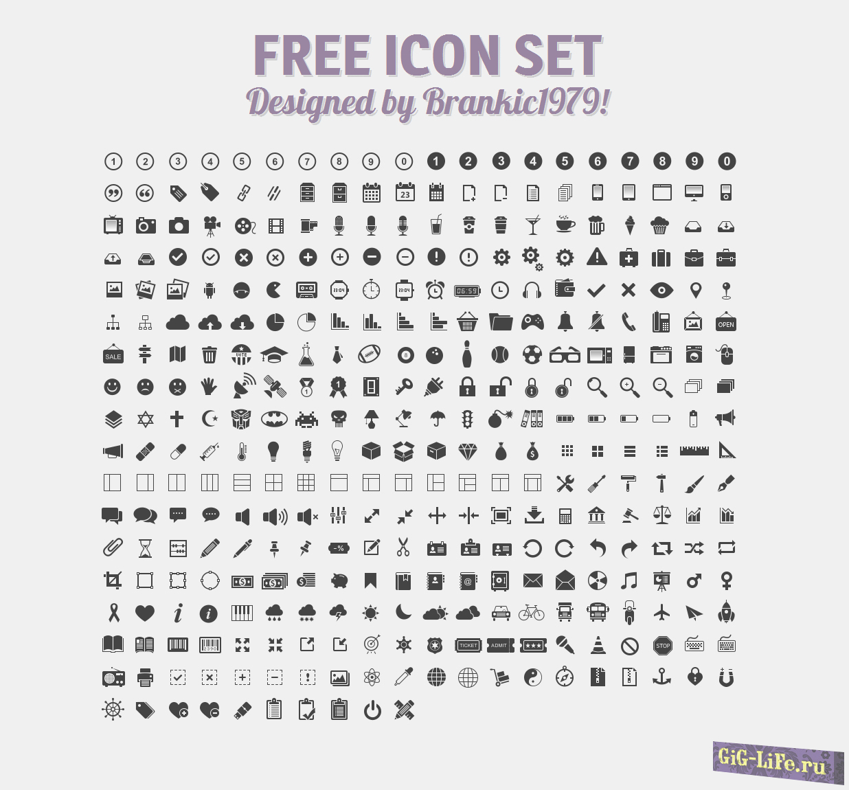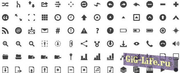 Иконки выполнены на бытовые темы, игровые, системные, каждой категории по небольшой доле иконок.