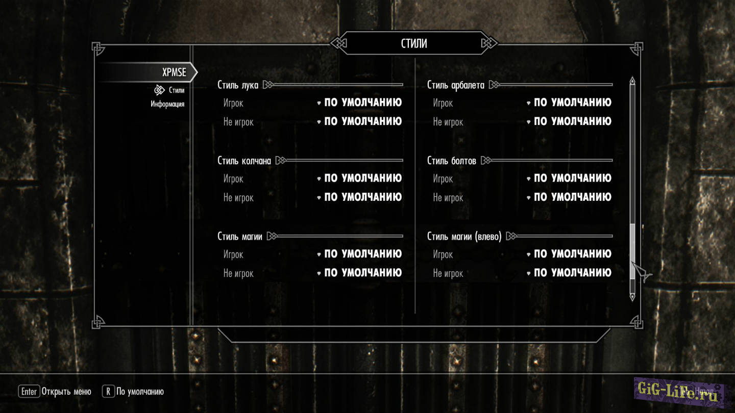 - Если у вас (RaceMenu), то установите все слайдеры, связанные с XPMSE, в RaceMenu и MCM по умолчанию.