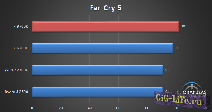 Как можно понять по результатам, Intel Core i7 9700K обладает лучшей производительностью, однако разница в большинстве случаев относительно невелика. Самый большой разрыв в производительности появился в Far Cry 5, в которой Intel Core i7 9700K на 11 fps быстрее, чем AMD Ryzen 7 2700X.