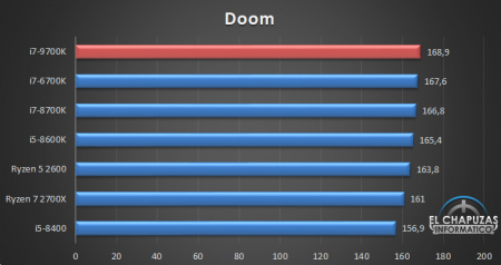 Intel, Intel Core i7 9700K, Elchapuzasinformatico, Doom, Far Cry 5, Resident Evil 7, Total War: Warhammer 2, Battlefield 1, Rise of the Tomb Raider, MSI GeForce GTX 1070 Gaming Z, AMD Ryzen 7 2700X