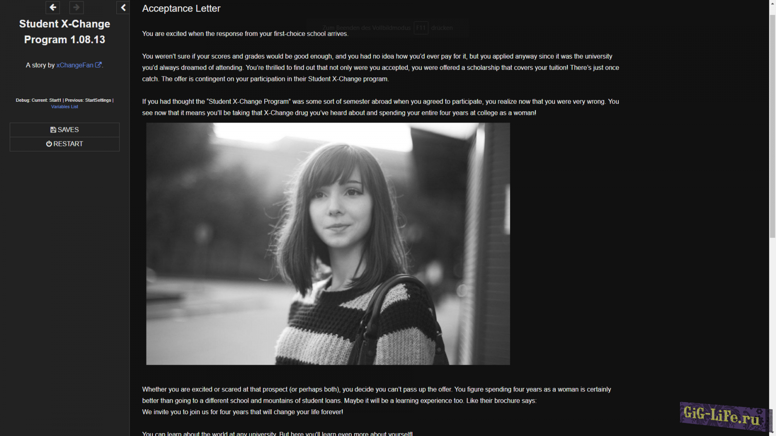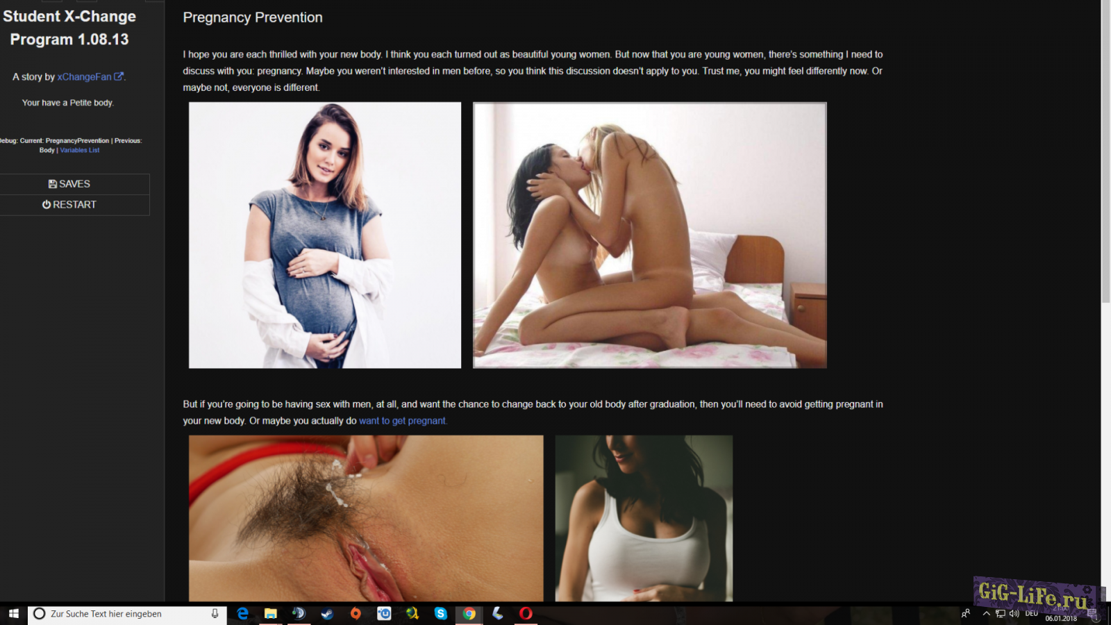 1.08.11 (HTML + ImagePack) - Multiple levels in side effects will now affect you. Some events will now have female alternatives for those who have not had male vaginal sex.