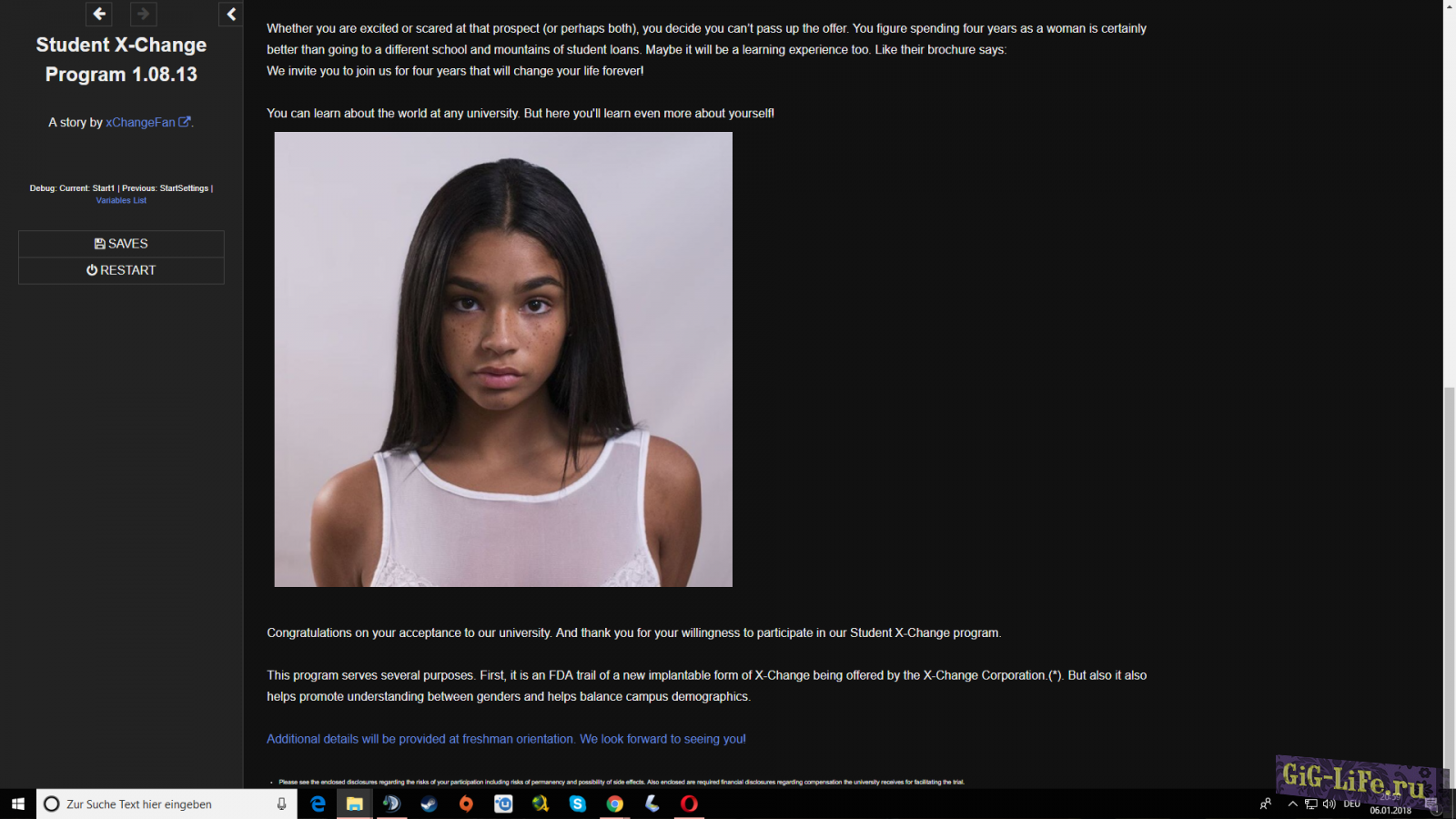 1.01.01 - 1.07.01 Added Part 1-7. Body selection and side effects. (Part 4 is alternative story with minimum integration. I will add it if more integration for it is added to the other parts.)
