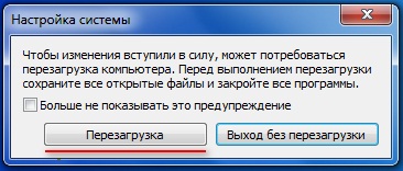 Если все сделали правильно, появится сообщение: «Чтобы изменения вступили в силу, нужно перезагрузить компьютер». Перезагружаем.