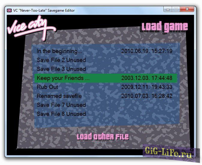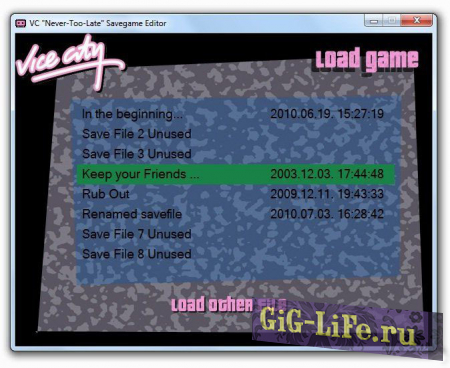 Программная с помощью которой вы сможете редактировать свои сохранения в легендарной игре Grand theft Auto Vice City.